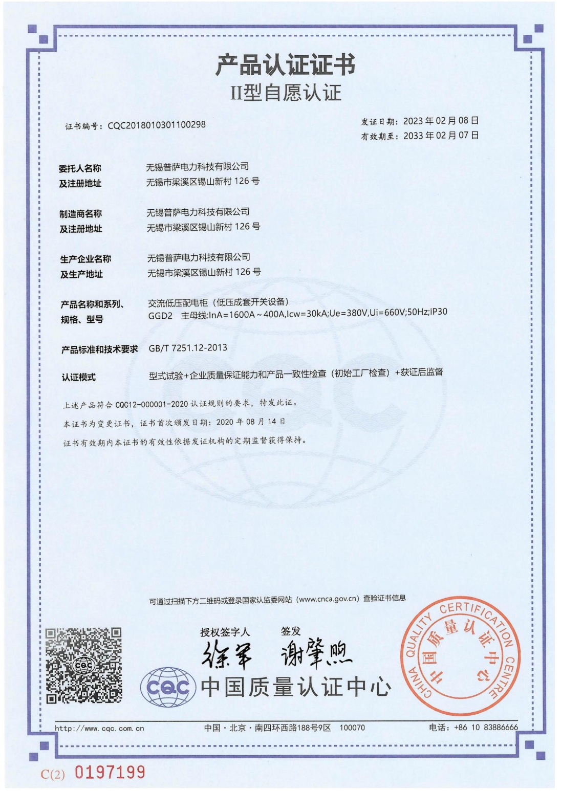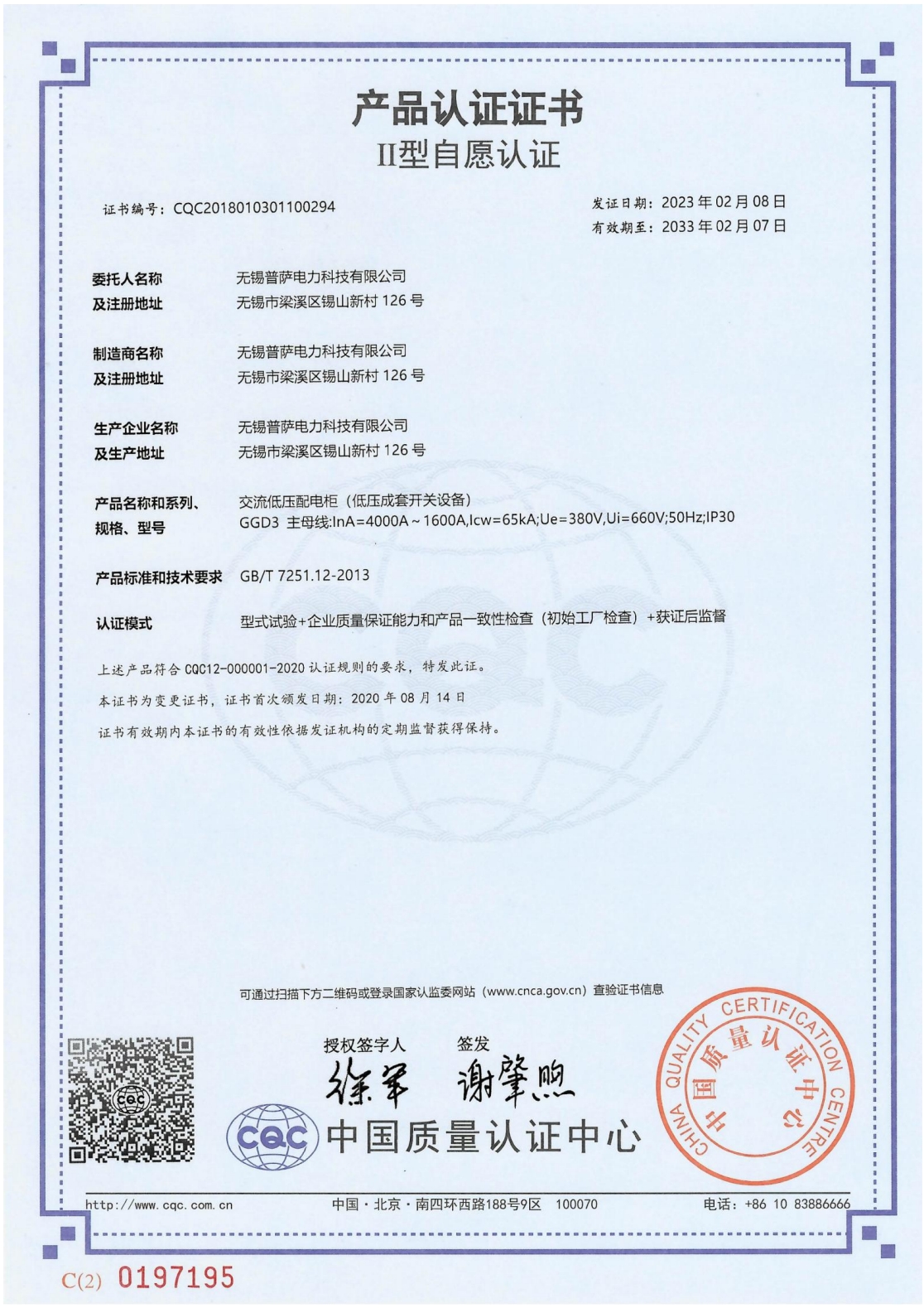 产品认证证书